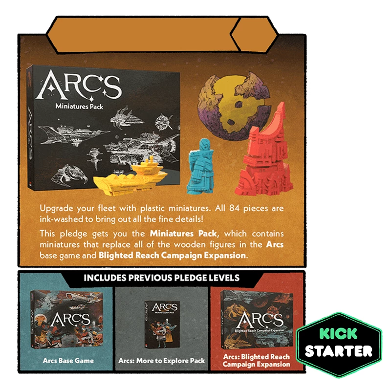 In Arcs, 3-4 players guide their factions through a fast-playing space opera that unfolds over a trio of 60-90 minute sessions. The game opens in the final days of a decaying empire. Players take the role of the last regents of a once proud state that stretched to the farthest worlds of the Reach. Faced with an encroaching blight that threatens the outer planets, players must balance the integrity of their homelands with their own ambitions.