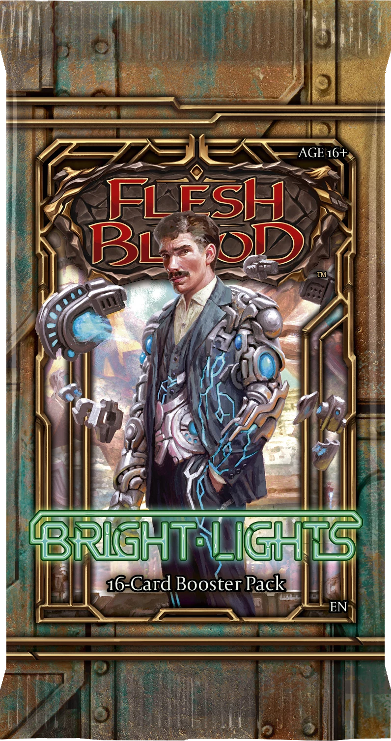 Bright Lights takes Flesh and Blood game play to new frontiers of innovation, with the first ever equipment that start the game in your deck. Transform your base equipment into state-of-the-art Evo equipment and construct the mech suit of your dreams! This all Mechanologist set offers a limited format experience like no other.