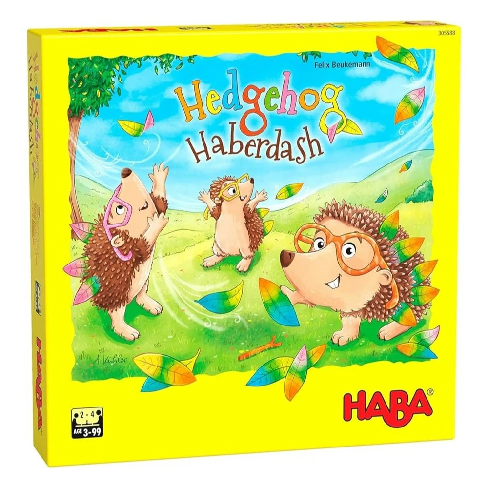 The hedgehog children are playing dress-up and want to have big spines in their favorite colors. To do this, the players need to draw leaves with the right colored points out of the leaf bag, but be careful! The wind can blow the leaves around so that even leaves you thought were safely yours fly away again! The first player to completely decorate their hedgehog with leaves in their color wins Hedgehog Haberdash.