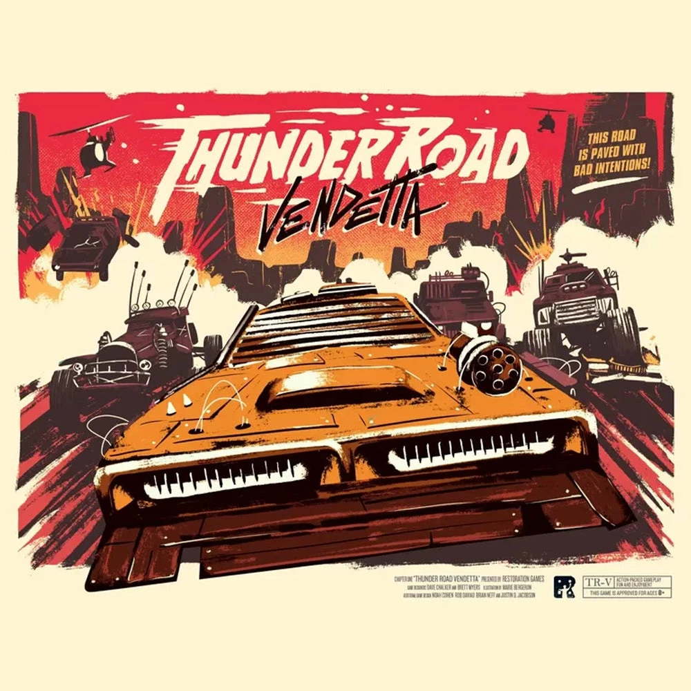 Thunder Road: Vendetta is a revved-up restoration of the classic 1986 game of mayhem on the asphalt. Grab your crew, roll your dice, race your cars, shoot your guns, and try not to get wrecked.