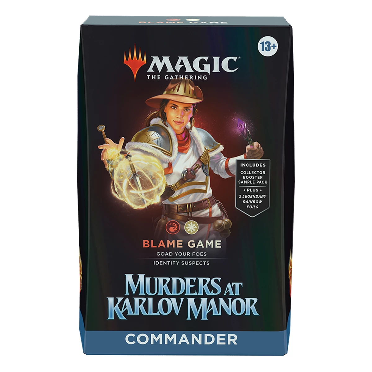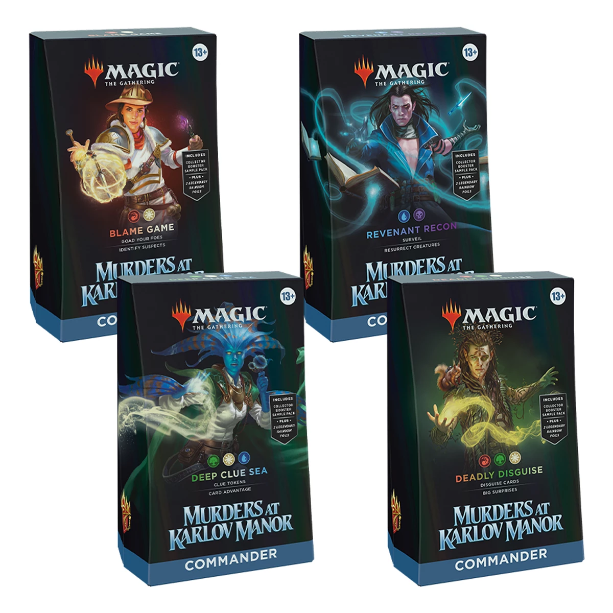 In Commander, four players come together to show their strength and strategy, with one player coming out on top. Each 100-card ready-to-play Murders at Karlov Manor Commander Deck makes it easy for Commander fans in your store to grab a deck and play right away.