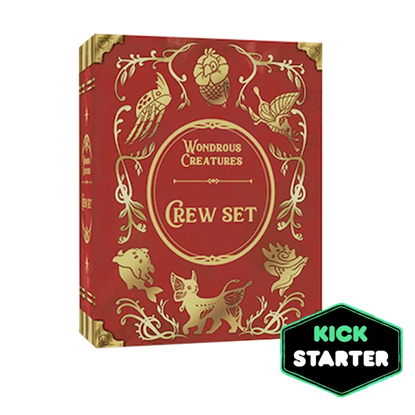 12 Crew Meeples come in 4 colors, and each color consists of 1 magnetic and 2 regular meeples. The 13 Crew Cards add different start conditions or one-time use abilities for each species of our crew members, as an advanced rule.